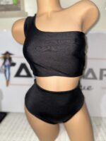 This swimwear set combines elegance and comfort. The classic-style top enhances your bust with a modern and sophisticated design, while the high-waisted bottom with shaping effect flatters your figure by providing support and control in the abdominal area. Perfect for looking radiant and confident with every move.