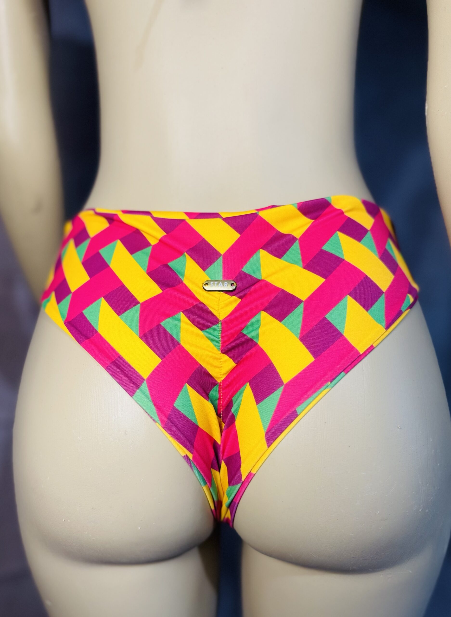 Panty Semi Alta tipo bikini con arruche en la parte trasera, efecto faja un leve Corte en V para darle ese toque a la silueta y asi poder resaltar nuestra figura