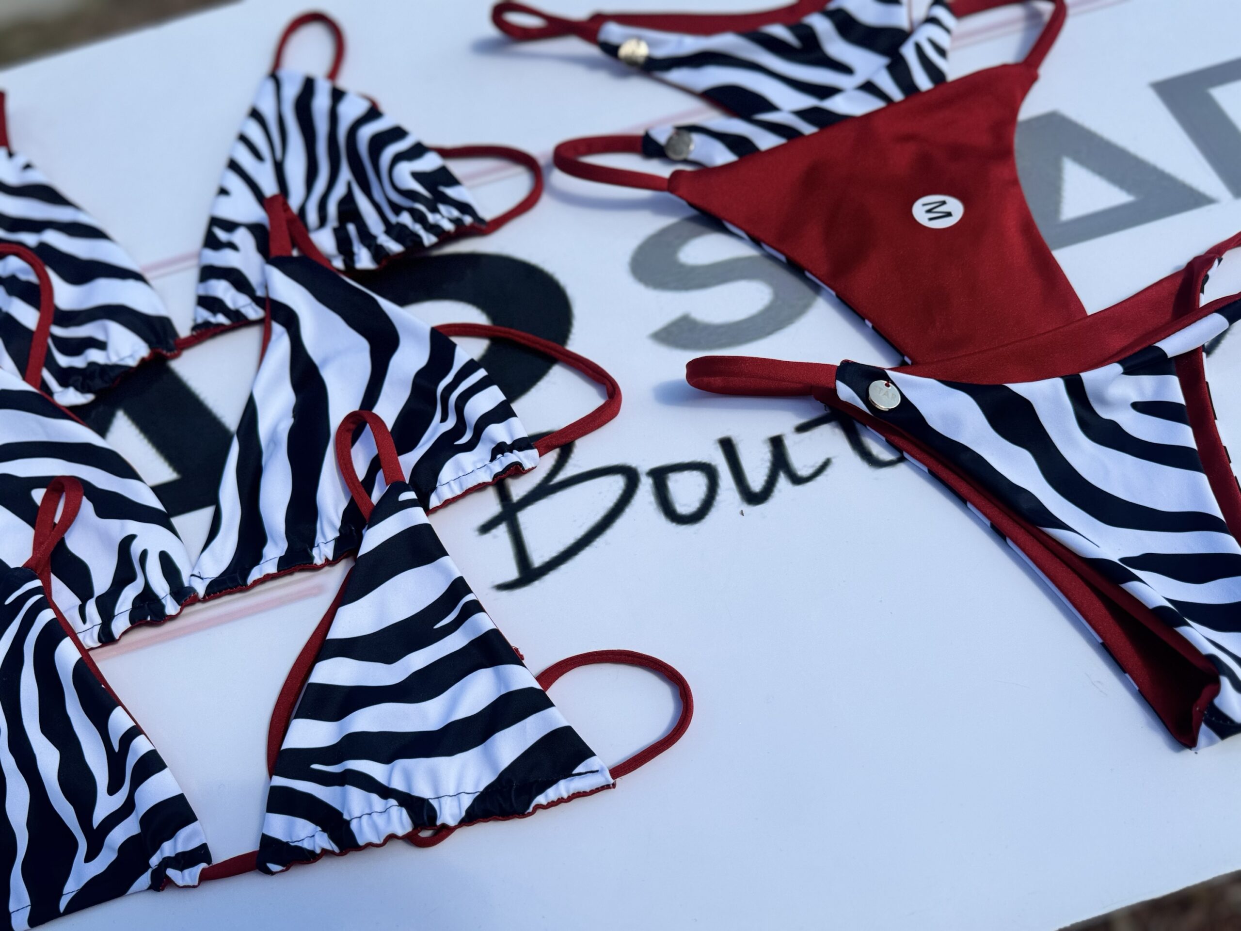 Red Safari is where bold elegance meets untamed beauty. Designed for the woman who commands attention effortlessly, this luxurious reversible bikini offers two iconic looks in one flawless silhouette. Turn heads with the fierce zebra print or reveal your power in a striking, radiant red — both crafted to sculpt, flatter, and move with you.