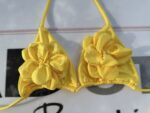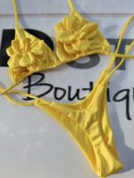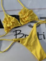 This bright yellow bikini is perfect for those looking to add a touch of elegance and femininity to their beach or pool look. With a two-piece design, this set features floral details on the top, creating a fresh and attractive style.