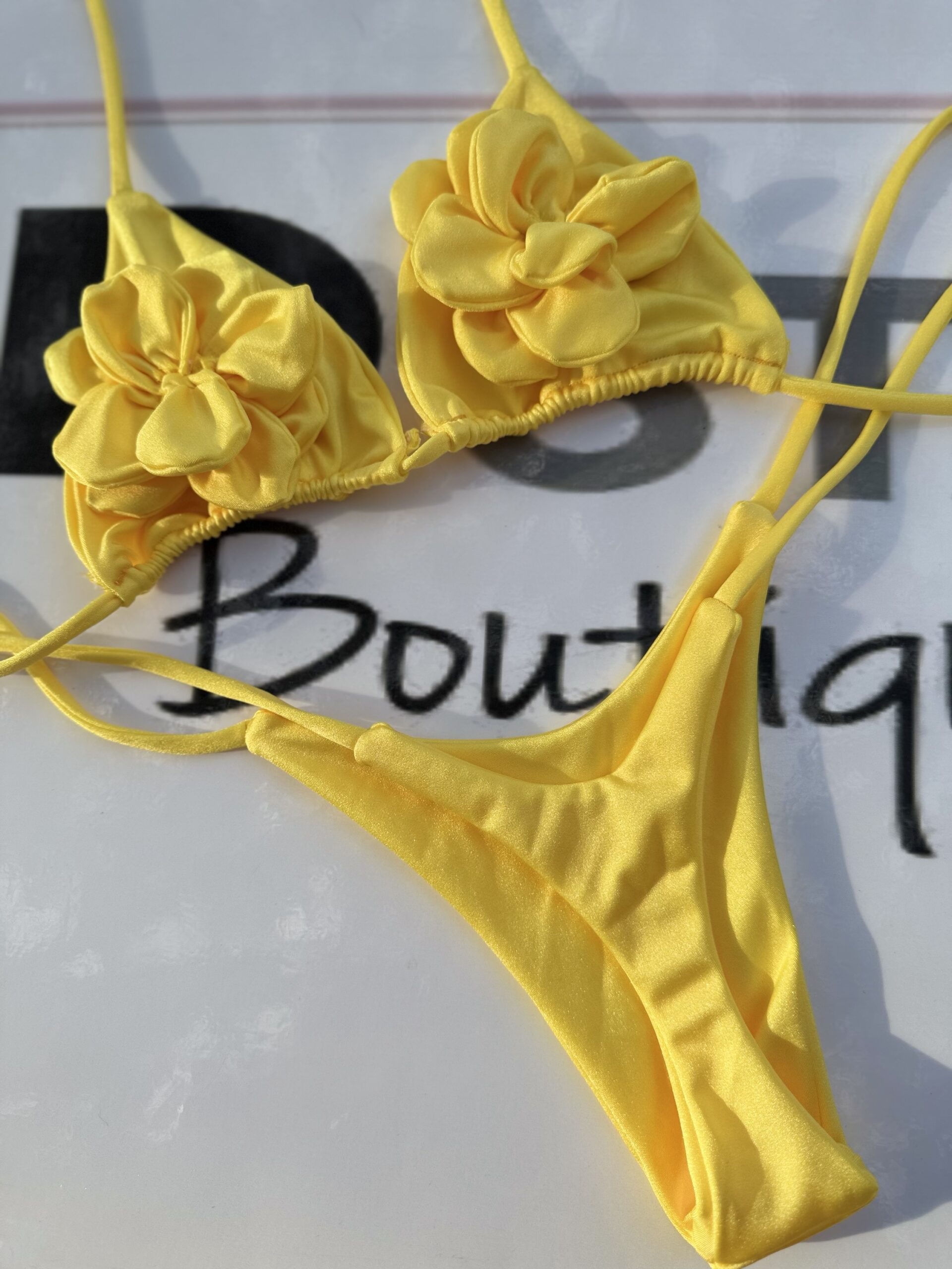 Vibrant Yellow Bikini with Floral Details